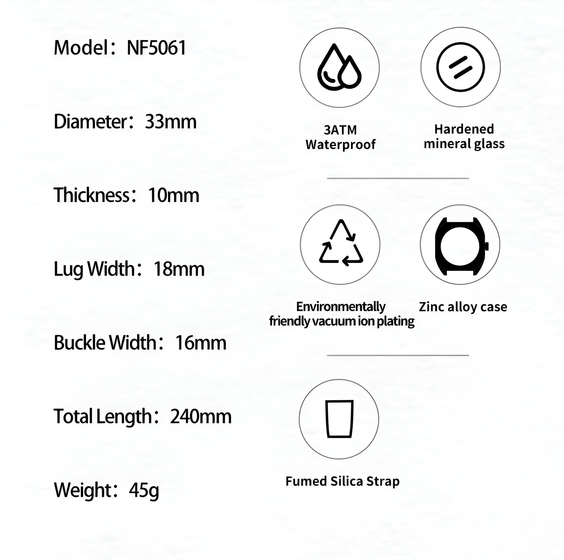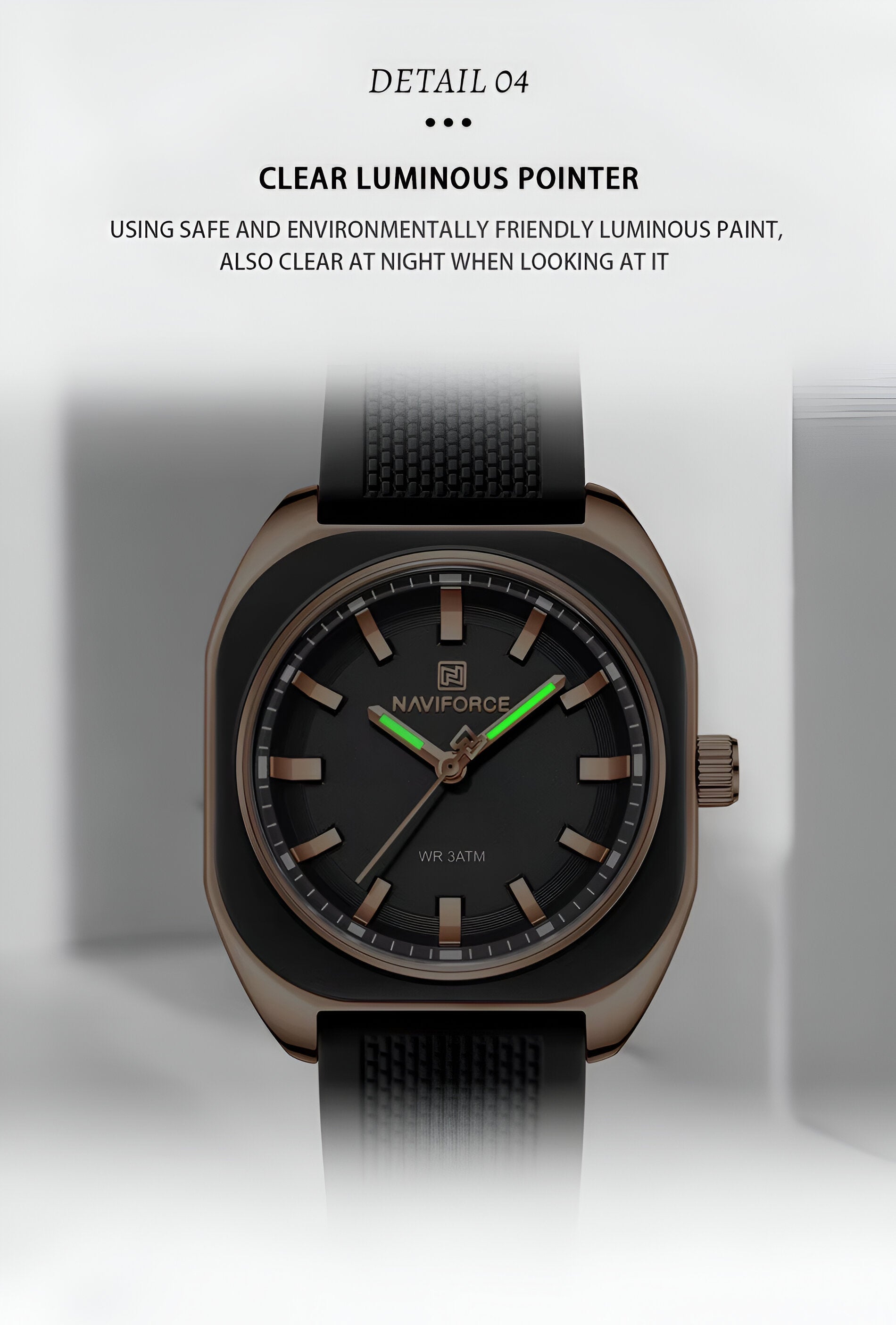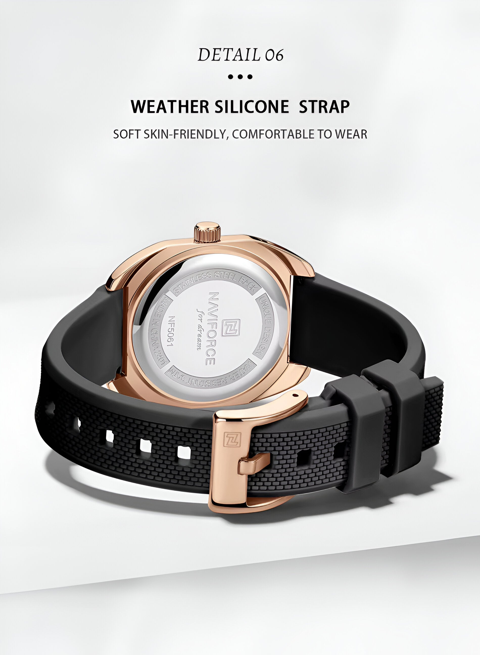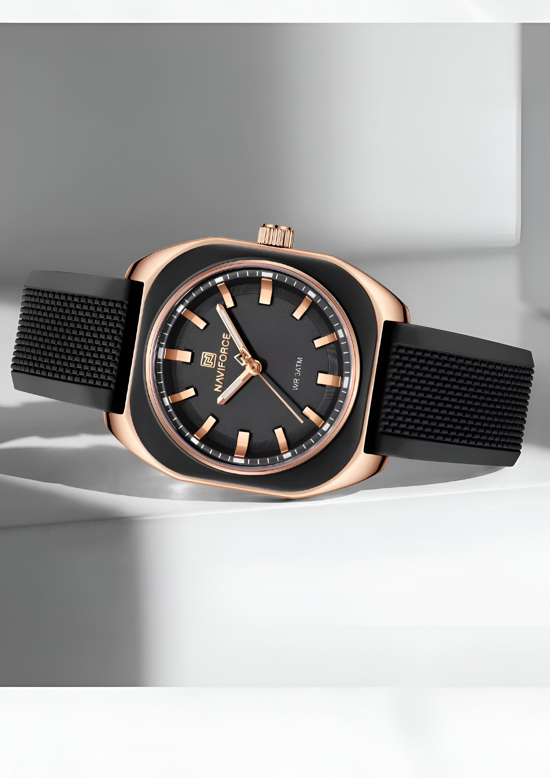 Descubre la elegancia y sofisticación de los relojes **Naviforce**, diseñados para quienes buscan estilo, calidad y funcionalidad en un solo accesorio. Con materiales de primera y un diseño innovador, este reloj no solo complementa tu look, sino que también resalta tu personalidad con un toque de lujo y distinción. Su correa elegante se adapta perfectamente a cualquier ocasión, permitiéndote lucir impecable en todo momento. Más que un simple reloj, **Naviforce** es sinónimo de prestigio y modernidad, ideal para quienes desean destacar con cada detalle. ¡Hazlo tuyo y eleva tu estilo al siguiente nivel!/// El reloj incluye su estuche original y tarjeta de garantía. ///Ficha TécnicaPantalla AnálogaResistencia al agua de 3ATM (solo exposición accidental al agua No ducha, No se puede sumergir, No usar en actividades acuáticas).Tipo de cierre: HebillaMaterial de la caja: ABSGrosor de esfera: 1 cmAncho correa: 1.8 cmDiámetro: 3.3 cmMaterial de la correa banda: GomaLongitud de La correa: 24 cm ( Ajustable )Peso neto: 45gTérminos de garantía: Para defectos de fábrica o solicitudes de retracto, es importante revisar el producto inmediatamente al recibirlo y antes de usarlo, ya que no aplicará garantía una vez utilizado. Se dispone de un máximo de 5 días para reportar defectos de fábrica, como piezas faltantes o rotas. En el caso de maquinaria, la garantía cubre tres meses para garantizar su correcto funcionamiento. Para efectuar una devolución, el producto debe ser devuelto en su empaque original, en buen estado, con todos los documentos y partes completas y sin daños.